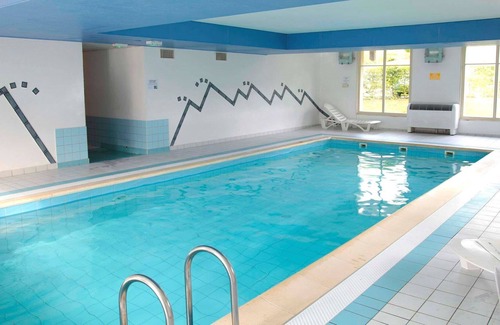 Layout: Kitchenette(hob, microwave, dishwasher, fridge), Living/bed room(single fold-away bed, double fold-away bed), bathroom(bathtub with shower, toilet), swimming pool(shared with other guests, indoor)