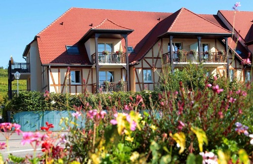 Résidence Le Domaine des Rois offers pleasant apartments within walking distance of the picturesque town of Bergheim . It consists of an L-shaped building with 3 floors and good apartments. They're all nicely furnished and feature a complete kitchenette and a balcony or terrace/garden with garden furniture. We offer the following types: Studio for 2/3 people (FR-68750-02) 2 room apartment for 4 people (FR-68750-03) 3 room apartment for 6 people (FR-68750-04)