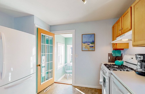 The three-bedroom interior features gorgeous hardwood floors and strong natural lighting throughout. Relax in the living room while streaming your favorite shows and movies on the flatscreen smart TV or curl-up with a good book in the cozy sun room. The full kitchen comes equipped with all the major appliances and hand-held utensils for at-home meals which can be enjoyed at the dining table set for six. Central heating, free WiFi, and a private washer/dryer provide in-home essentials.