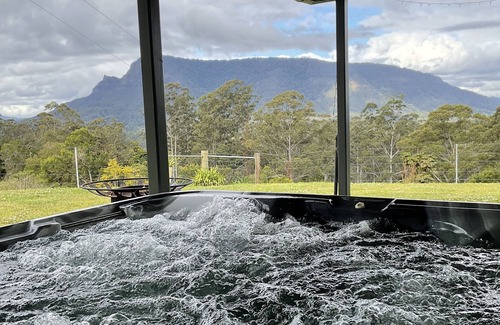 Escape to the country and soak up the uninterrupted views of Mount Warning and surrounds whilst relaxing in the spa. Unwind in our secluded large family home that sleeps up to eight that you will have all to yourself. Choose to bush walk or ride in the nearby Border Rangers National Park, swim at Hanging Rock Falls only ten minutes drive away, visit the nearby village of Nimbin or beautiful little town of Kyogle and all it has to offer. If you prefer the surf, the coastal towns of Byron Bay and the Gold Coast are only just over an hours drive. There is a local shop around 5 minutes drive away that sells take away food and alcohol as well as some grocery items. Our country style home is clean and comfortable and has everything you’ll need with full kitchen, dining, two lounge room spaces, two seperate bathrooms (one with laundry included), four bedrooms, verandahs with undercover seating, gas bbq and pizza oven, undercover spa and heaps of parking space. You can choose to pack a lot of activities in or just chill out and turn your devices off and get away from it all for a while.