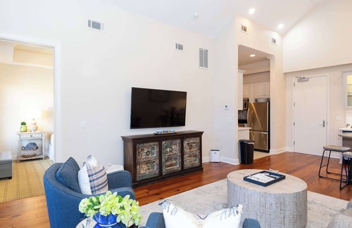 ● Flexible Living Room – Includes a pull-out sofa for extra guests, plus Smart TV with YouTube TV