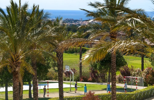 Family-friendly aparthotel with a golf course and a seasonal outdoor pool