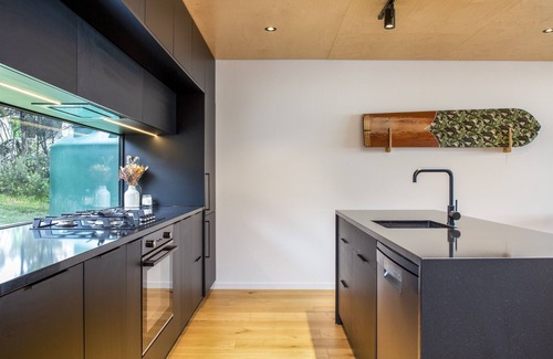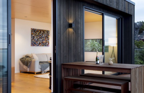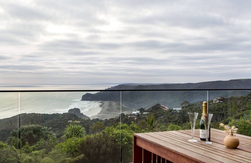 Feel on top of the world at this modern holiday home with breathtaking views North to Piha Beach and Lion Rock. Surrounded by native forest, high on the Te Ahuahu ridge-line you can relax in an environment of modern design, sun-soaked decks, and tranquility that will quiet even the busiest of minds. Located very close to Piha Beach (5mins) and Karekare Beach (8mins). The popular and scenic Mercer Bay Loop track is also located just at the end of the road for wilderness explorer’s.