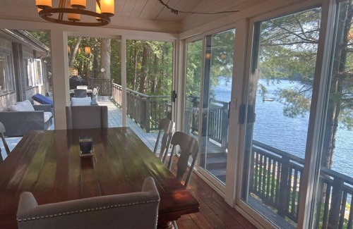 Who doesn't love all day sun on a massive deck overlooking fabulous Lake Joe in the heart of Muskoka? Pine Acres has all that, and so much more! This Lake Joe cottage is situated on 200 ft of shoreline with a 50 foot wide shallow sandy bay section and 8 ft depth off the boathouse. Located in Woodruffe Bay on Lake Joseph, this is the perfect spot for families that are looking for a spacious, family friendly cottage that doesn't compromise on style. Relax in the main floor open concept living space, and take in the lake views. The kitchen is fully outfitted for the Chef in your group to craft outstanding meals during your stay. There is also a massive dining room table outside for those who wish to enjoy a meal amongst nature. The outdoor BBQ overlooks the lake and there is Sonos sound for enjoying tunes while in the hot tub or dining.