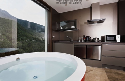 This Jeongseon aparthotel provides complimentary wireless Internet access. 49-inch flat-screen televisions come with premium cable channels.