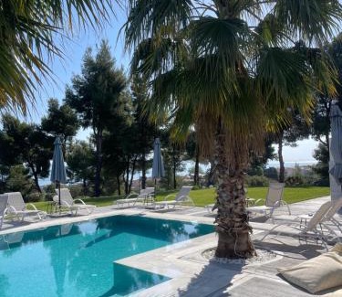 Offering pool views, Pine Resort in Polychrono features accommodations, pool with a view, a garden, and a bar. This apartment provides free private parking and luggage storage space. The apartment offers sea views, a sun terrace, and free Wifi is available throughout the property. Accommodation is equipped with air conditioning, a fully equipped kitchen, a flat-screen TV, and a private bathroom with walk-in shower, a hair dryer, and free toiletries. At the apartment complex, the units include bed linen and towels. There is an on-site coffee shop. Sightseeing tours are available in the vicinity. A children's playground is also available for guests at the apartment. Polychrono Beach is a 8-minute walk from Pine Resort. Thessaloniki Airport is 53 miles from the property.