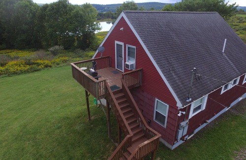 A Pine Row Manor features a main house with four bedrooms and two baths and a one bedroom apartment with a private bath and full kitchen. Guests can choose to rent the whole house as a five bedroom three bathroom home (the private apartment can be opened up to join the main house), a four bedroom two bath home, or simply a one bedroom apartment. A Pine Row Manor features central air-conditioning, an open family living plan/kitchen and living area, an additional kitchen in the family suite and wireless high speed internet access. The master bedroom has a king size bed and private bath. The house features vaulted cathedral ceilings and sky lights in the living room, washer/dryer and cable TV. There is a large furnished deck off of the living room with spectacular views of the valley! Outside amenities include a large yard which is great for practicing or playing baseball. There is a gas grill for bbq's. This house is perfect for enjoying a team gathering! This home is located next to A Mountain View Manor House which is accessible by walking on a 400 foot long trail which includes a small bridge.