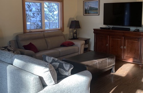 Escape to our gorgeous self-contained suite located on our five-acre forested property South of Bragg Creek. The suite is detached from the main house and completely private. Suitable for a romantic get away, a family looking to get the kids outside, or a professional looking for a beautiful place to work.. Our friendly dogs are on the property. The suite has 12-foot vaulted ceilings and large windows. The master bedroom has a queen bed and a tall boy dresser. There is a pull-out sofa with an upgraded mattress in the living room. Kitchen is fully equipped. The kitchen includes a new gas range with grill, dishwasher, fridge, microwave, coffee makers, utensils, dishes and cooking pots that you will need. There is a propane barbeque available on the deck. There is also washing machine and clothes dryer included in the suite. Enjoy the outdoor hot tub (not shared, located in the yard of the main house) with an unbelievable view of the dark night starry sky away from the city lights. Outdoor deck at the back of the suite. The deck backs onto undeveloped forest for as far as you can see. Very private and perfect for enjoying the wildlife corridor located behind the suite. Starlink Internet. Enjoy the large smart TV with satellite programming including movie and sports channels or plug into the sound bar to enjoy the music of your choice.