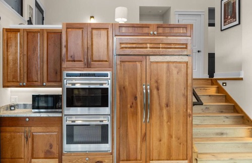 Luxury awaits in the spacious, open living space with vaulted ceilings, a gas fireplace, Smart TV, and floor to ceiling panoramic views of the canyon and wilderness. Step into the fully stocked kitchen with modern appliances, beautiful granite countertops, and designer finishes. You'll have everything you need to prepare a sophisticated meal or a quick bite to enjoy at the 6 person dining table with stunning views from every angle.