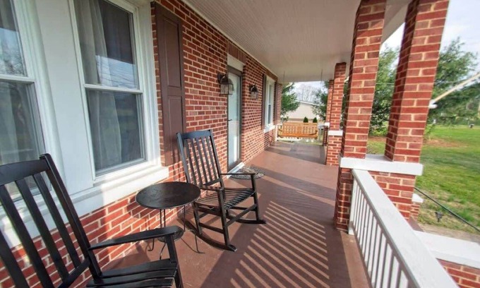 Minutes from the Luray Caverns and historic downtown, this red brick farmhouse boasts a stunning 270 degree view of the Blue Ridge Mountains! Our three bedroom and two bathroom home sleeps up to 14 guests with beds in the lower level as well. Enjoy a cup of coffee or a glass of wine while sitting on the front porch gazing out over the mountains. The home offers fully-equipped kitchen, WiFi, 50-in smart TV, and game room. We hope to host you!