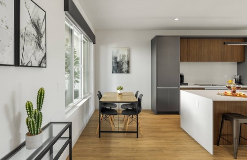 Step into the expansive open-concept living areas, meticulously designed for relaxation and entertainment. Each unit features a spacious living room with contemporary furnishings and plush sofas that convert into Queen beds for additional guests. Enjoy state-of-the-art Smart TVs for movie nights or catching up on your favorite shows. The living areas seamlessly flow into gourmet kitchens equipped with high-end Café appliances, large islands with bar seating, and all essentials for culinary enthusiasts. Adjacent dining areas provide comfortable spaces for enjoying meals with family and friends, while private balconies offer perfect spots for coffee or cocktails, ensuring comfort and convenience throughout your stay.