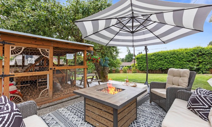 Your family will be close to everything when you stay at this centrally-located place cottage in downtown Snohomish. Enjoy the fully fenced yard with yard games, and two firepits. This place offers all the comforts of home and the attraction of a getaway. Walking distance to farmers market, restaurants, bike trails, the river, wineries and so much more. Weather you are on a stay cation or away from home Chicken & the Egg is a special piece of Snohomish history for you to enjoy. No worries only hens here ❤️