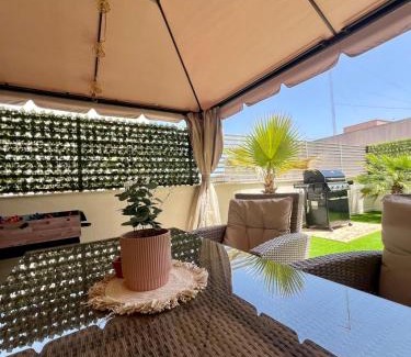 Piso con terraza a 5 min del mar is located in Alcanar, just 26 miles from Delta de l'Ebre and 26 miles from Castillo de Xivert. This apartment offers air-conditioned accommodations with a patio. The apartment also features free Wifi, free private parking, and facilities for disabled guests. Featuring a terrace and garden views, the spacious apartment includes 2 bedrooms, a living room, cable flat-screen TV, an equipped kitchen, and 2 bathrooms with a bidet and a bath. Towels and bed linen are available in the apartment. The property has an outdoor dining area. Outdoor play equipment is also available at the apartment, while guests can also relax in the garden. Plaza Constitucion is 12 miles from Piso con terraza a 5 min del mar, while Peñiscola Castle is 18 miles from the property. Castellón–Costa Azahar Airport is 44 miles away.