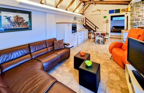 Gornji Zvečaj: Single-family house "Pixie House", 2 storeys. 12 km from the centre of Duga Resa, 100 km from the sea, 80 m from the river. Private: property 765 m2 with lawn. Hot tub, garden furniture, barbecue, fireplace, children's playground (slide, swing). In the house: internet access. Parking (for 3 cars) at the house on the premises. Shop 2 km, restaurant 200 m, bus stop 950 m, pebble beach 100 km. Nearby attractions: Old Town Bosiljevo 18 km, Old town Novigrad na Dobri 16 km, River Mrežnica 100 m. Please note: suitable for families. Groups of teenagers on request only.