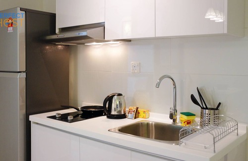 The unit consists of 1 Queen size bed and 1 Sofa bed that can accommodate up to 3! We have a fridge for you to store your cold drinks and food. We also have sufficient kitchenware for simple cooking purposes. We provide cutlery such as plates, spoon and fork as well.
