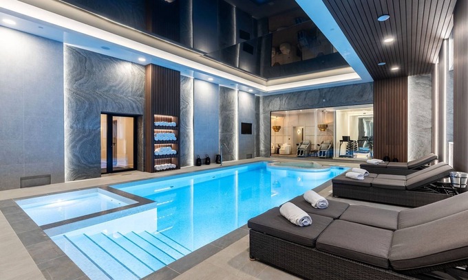 Inside, the private leisure suite features a heated indoor pool, children’s pool, hot tub, and sauna - creating a relaxing, spa-like escape without ever leaving the house. Adjacent to the pool is a state-of-the-art gym, fully equipped so guests can stay on top of their fitness routines during their stay.