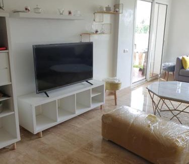 Playa del Pasha offers accommodations in Restinga Smir, a few steps from Restinga Beach. This beachfront property offers access to a balcony and free private parking. Opening onto a terrace with garden views, the spacious air-conditioned apartment consists of 2 bedrooms. A flat-screen TV is provided. If you'd prefer to cook in the comfort of your own space, you can make use of the kitchen facilities.