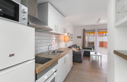Situated in Maspalomas, the Bungalow Playa Las Burras with step-free access is just a short walk from the beach. The 2-storey property consists of a living room with a sofa bed for 2 people, a well-equipped kitchen, 1 bedroom and 1 bathroom as well as an additional toilet and can therefore accommodate 4 people. Additional amenities include high-speed Wi-Fi (suitable for video calls) with a dedicated workspace for home office, a TV, air conditioning as well as a washing machine. This property features a private outdoor area with both an open terrace and a balcony.