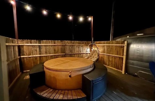 Who needs an affordable getaway to Possum Kingdom Lake and a nostalgic adventure all in one? Check out Playin’ Hookie, our vintage airstream pulled by our Panel Wagon that’s been converted to its own bedroom! But wait! You also get a private deck with hot tub, fire pit and a Tri-grill!
