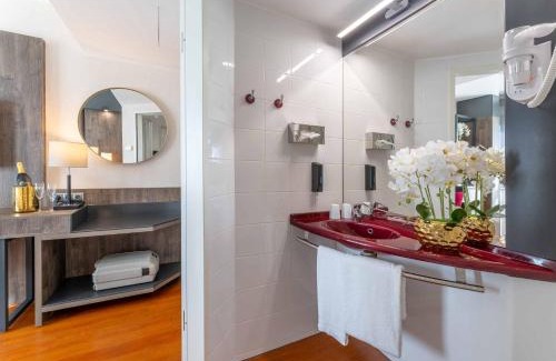 Modern rooms with a flat-screen TV, located within the Siemens Industrial Park. It is 2.5 mi from Karlsruhe city center and the Rhine River. Each of our 134 rooms is equipped with an LED TV, desk, hairdryer, refrigerator and in-room safe. The air-conditioned rooms at the PLAZA Premium Karlsruhe are decorated in warm colors, and feature soundproofed windows and a work desk. A hairdryer is provided in the private bathrooms. A varied breakfast buffet is available every morning in the PLAZA Premium’s breakfast room. There is also a stylish bar serving a variety of drinks and small snacks. Trams stops are just 328 feet from the hotel, and Knielingen-Siemensallee S-Bahn Train Station is a 7-minute walk away. From here, guests can reach Karlsruhe city center in 10 minutes.