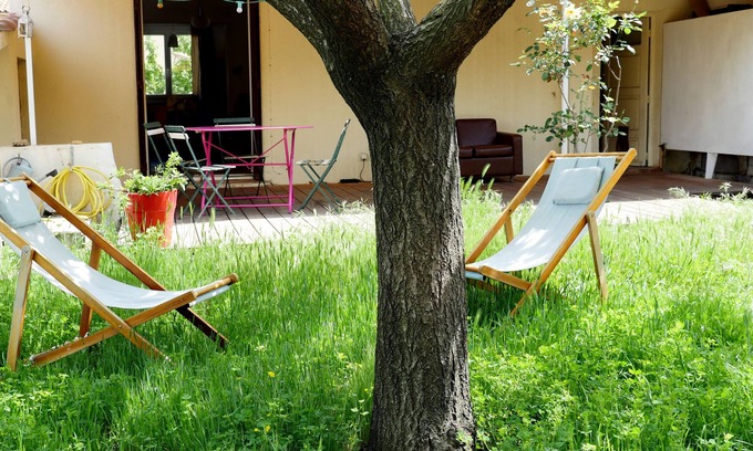 Located in a quiet side street, this is a charming house from the 1950s. You will appreciate our accommodation for its exterior (fruit trees, 40 m2 terrace), its living room and dining room, its kitchen on the ground floor and its three bedrooms upstairs: a spacious master bedroom, another with a bed (120 cm), a children's room with a single bed. All 20 minutes walk from the city center, 15 minutes by car from the beaches and 10 minutes from the highway entrance. We are located next to Montcalm Park, ideal for basketball, football, jogging, relaxation, picnic ...