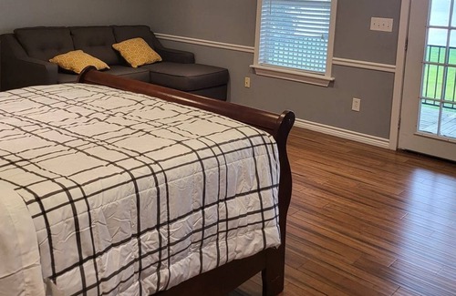 You can relax on the deck/patio by the lake, picnic tables in the backyard, balcony outside the master bedroom, or the expansive space of the house.