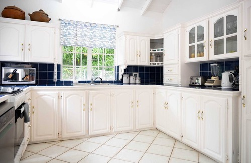 This truly Caribbean 4-bedroom, 3-bathroom villa sits amid lush, tropical, fruit bearing gardens and offers stunning vistas of the Caribbean Sea. Sunsets from the main deck are nothing short of spectacular. The villa enjoys a spacious living area furnished in the Caribbean style, with an open plan sitting room adjoining a dining area and a large well-equipped kitchen with a separate laundry room. All the living areas are cooled with ceiling fans. All of the three double bedrooms are air-conditioned and enjoy private balconies with sea views. The air-conditioned master suite on the top floor of the villa has a balcony with a panoramic view of the Caribbean Sea. The villa and its gardens are private and feature a wonderful 30 ft. pool along with a pool side gazebo and lots of terrace areas for relaxing and watching the hummingbirds alight on the bougainvillea and the sail boats drift by. Enjoy sundowners on the patio and al fresco dining as the sun goes down and enjoy the colorful glow of twilight.