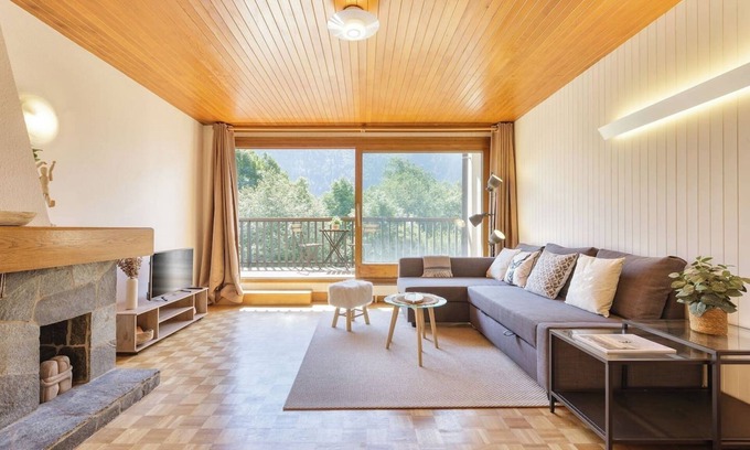 Plein Sud - Apart 2CH Vue Mt Blanc | Parking | Balcon | Calme is located in Chamonix City Centre. Plein Sud - Apart 2CH Vue Mt Blanc | Parking | Balcon | Calme provides accommodation, featuring Wellness Facilities, Fireplace/Heating, Child Friendly, among other amenities. This Apartment features Wellness Facilities, Fireplace/Heating, Child Friendly, to make your stay a comfortable one.