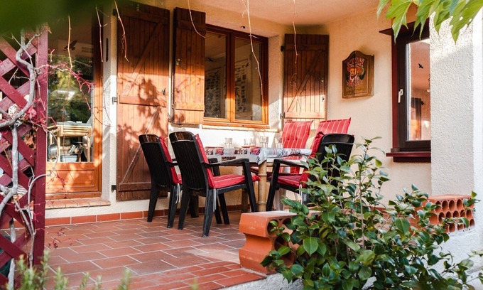 Spacious 2-bedroom villa with mezzanine, southfacing balcony with seaview, garden and terrace (garden furniture, barbecue). 5 sleeps maxi. Non smoking house. Parking space in front of the house. Pets allowed.