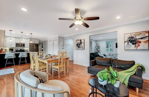 KITCHEN and DINING: Fully equipped kitchen with pots&pans, Keurig coffee machine, mixing bowls, etc. Large extendable dining table to sit 14.