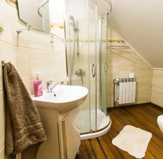 Providing mountain views, Pod Bieszczadem in Jaśliska features accommodations, a garden, and a shared lounge. This farm stay provides free private parking, a shared kitchen, and free Wifi. Guests can enjoy quiet street views. At the farm stay, each unit has a desk. At the farm stay, all units are allergy-free. At the farm stay, each unit is equipped with bed linen and towels. A selection of options including local specialities and cheese are served for the buffet breakfast. If you'd prefer to not eat out, you can make use of the kitchenette facilities, which include a fridge, kettle, and kitchenware. If you'd like to discover the area, cycling is possible in the surrounding area, and the farm stay can arrange a bicycle rental service. Skansen Sanok is 28 miles from Pod Bieszczadem, while Museum of Oil and Gas Industry Foundation is 17 miles away. Rzeszów-Jasionka Airport is 67 miles from the property.