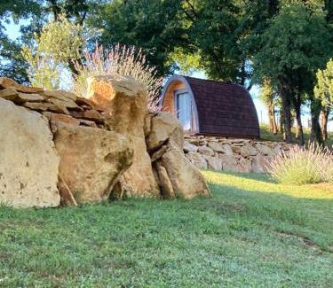 14 miles from Hirondelle Golf Course and 15 miles from La Prèze Golf Course, the property offers a garden and a terrace. Featuring garden views, the campground is composed of 1 bedroom and 1 bathroom with a hair dryer. Guests can take in the ambience of the surroundings from an outdoor dining area. The accommodation is non-smoking. The nearest airport is Limoges – Bellegarde Airport, 54 miles from POD Nature 2.