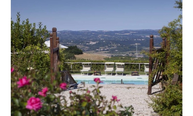 The farmhouse is surrounded by a large garden for the joy of the guests, and from the land belonging to the farm. The pool is wonderfully located on top of a hill that offers breathtaking views to the far horizon, with a bird's eye view of the Tiber Valley, and the summits of Mount Soratte and Mount Amiata. The medieval village of Lugnano, one of the most beautiful villages in Italy, is about 3 kilometers from us. There are shops, markets, bars and a small restaurant. Many other shops, markets and restaurants are located in the nearby villages, about 5/10 km.