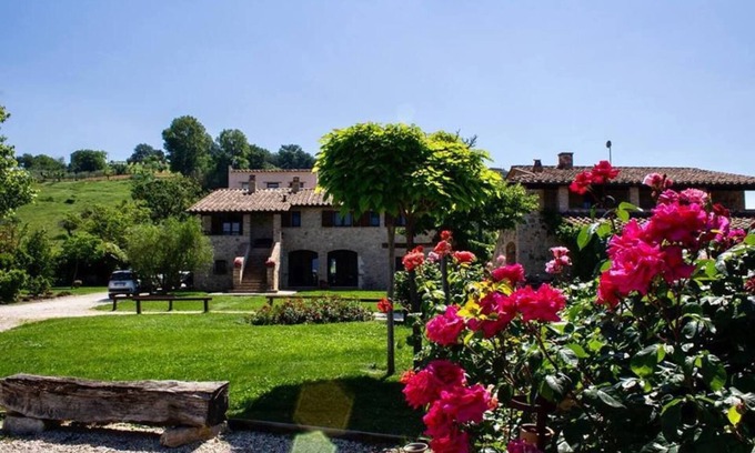 The farmhouse is surrounded by a large garden for the joy of the guests, and from the land belonging to the farm. The pool is wonderfully located on top of a hill that offers breathtaking views to the far horizon, with a bird's eye view of the Tiber Valley, and the summits of Mount Soratte and Mount Amiata. The medieval village of Lugnano, one of the most beautiful villages in Italy, is about 3 kilometers from us. There are shops, markets, bars and a small restaurant. Many other shops, markets and restaurants are located in the nearby villages, about 5/10 km.