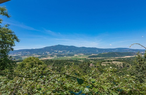Poggio Medei, set on the top of a typical Umbrian hill, is surrounded by a garden of 8000 sq m, completely fenced-in and bordered along the perimeter by lush hedges to guarantee privacy without depriving you of the picture-postcard view of the medieval borgo of Città della Pieve and, on the other side, a breathtaking view of the valley up to the towns of Cetona and Sarteano. After the automatic entrance gate, a drive through an olive grove leads to a covered parking area, conveniently located in the immediate vicinity of the house entrance. Here you are welcomed by a garden of glorious colours, bushes of Mediterranean herbs, cedars of Lebanon, olive trees and other species typical of the area. Completing it all is a beautiful lawn with various relaxing areas, such as the large, shady pergola which communicates with the kitchen and is equipped with comfortable iron furniture and a barbecue where you can dine outside, facing a unique view. Within the park is an attractive swimming pool complete with furniture for you to enjoy the silence and the sun that kisses this property.Please notice that photos are taken in spring, therefore flower blossoming, and the colours of the gardens' grass could be different at the moment of your arrival at the villa.