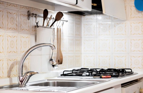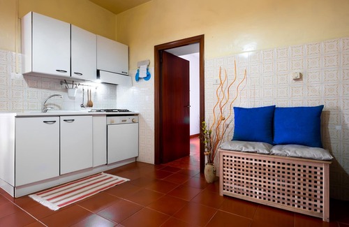 The apartment consists of a large fully equipped kitchen, a lounge furnished in the 70s style with a three-seater sofa bed and an armchair, where you can relax watching TV or reading a good book, a bathroom with a tub equipped with a rod for the curtain, for a practical shower, a spacious room with an extra large double bed (170cm X 200cm), to which you can add a single bed or with bars for children, a smaller room with a regular double bed (160cm X 190cm) , with access to the balcony; finally, a garden below which has a strawberry grape pergola with a marble table where you can have meals, enjoying the view.