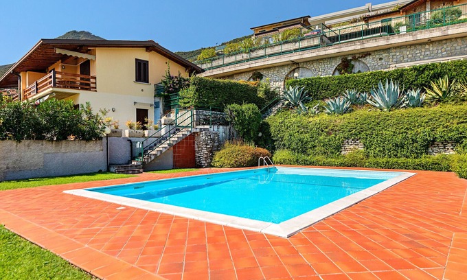 Located in Villanuova sul Clisi, inside a beautiful residence with swimming pool overlooking the lake, two bedroom apartment for a group or family holiday up to 6 people.