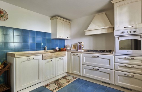 Inside, Poggio Tondo features a bright, welcoming atmosphere with tiled floors and comfortable, spacious interiors. Both floors include living and dining areas as well as kitchens. The upstairs living room opens onto the balcony, an ideal spot for morning coffee or a quiet evening with a view.