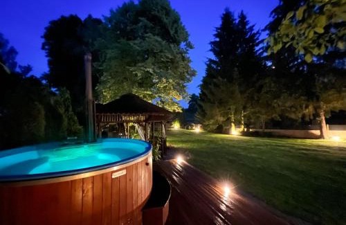 BathroomBidet, Towels, Private bathroom, Toilet paper, Bathtub or shower, Shampoo, Shower, ToiletMedia & TechnologyTV, Flat-screen TV, RadioGeneralFire extinguisher, Hardwood or parquet floors, Ironing facilities, Air conditioning, Trash cans, Smoke Alarm, Mosquito net, Private entrance, Tile/Marble floor, Iron, HeatingActivitiesHot tubOutdoorsOutdoor dining area, Outdoor furniture, Terrace, Barbecue, BalconyKitchenElectric kettle, Coffee machine, Stovetop, Refrigerator, Microwave, Kitchen, Dishwasher, Toaster, Washing machine, Oven, Wine glasses, Cleaning products, Dining tableLiving AreaSofa, Sitting area, Desk, Dining area, FireplaceViewGarden view, View, River viewBedroomWardrobe or closet, Childrens' cribs, LinensBuilding CharacteristicsDetachedEntertainment & Family ServicesChild safety socket covers, Baby safety gatesRoom AmenitiesSocket near the bedPhysical distancingSingle-room AC for guest accommodation |