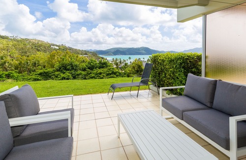 Sought after ground floor 2 bedroom apartment. Beautiful tropical surrounds, lovely water views and very popular location on Hamilton Island. The ground floor position is very popular as there is a lovely grassed area in front of the patio. Have a sunbake or the little ones will love the extra space to play.