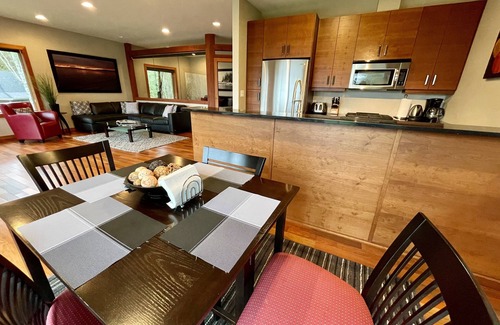 Points West Oceanfront Resort 1 Bed Ocean Point Suite. Features spacious floor plan with full kitchen, family and dining areas and exterior patios with bbq and hot tub. Stunning Low bank waterfront location steps to beach.