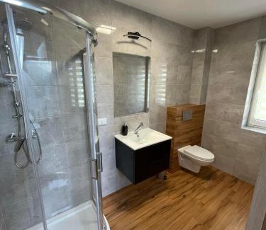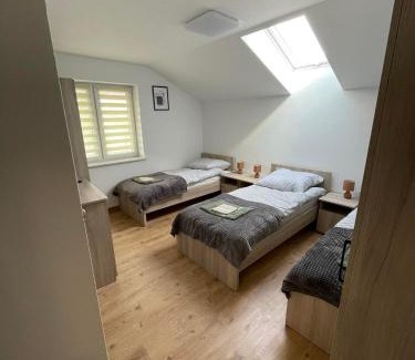 Pokoje Gościnne Koko Zamość enjoys a location in Zamość, 2.8 miles from Zamość Town Hall and 3.1 miles from Zamość Synagogue. This guest house offers free private parking, a shared kitchen, and free Wifi. Outdoor seating is also available at the guest house. Accommodation is equipped with air conditioning and features a flat-screen TV with cable channels, a fully equipped kitchen with a dining area, and a private bathroom with a hair dryer. A dishwasher, a microwave, and fridge are also offered, as well as a kettle. At the guest house, units are equipped with bed linen and towels. Zamość Cathedral is 2.8 miles from Pokoje Gościnne Koko Zamość, while Zamość Art Gallery is 2.9 miles from the property. Lublin Airport is 52 miles away.