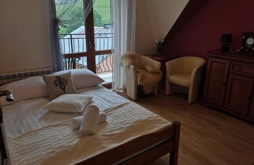 Pokoje Goscinne Pieninska Parzenica enjoys a location in Mizerna, 20 miles from Treetop Walk and 25 miles from Zakopane Railway Station. 10 miles from Niedzica Castle and 16 miles from Bania Thermal Baths, the property offers a garden and barbecue facilities. There's an outdoor fireplace and guests can access free Wifi and free private parking. At the homestay, every unit is equipped with a wardrobe, a flat-screen TV, a private bathroom, bed linen, and towels. A balcony with an outdoor dining area and mountain views is offered in select units. The rooms are equipped with heating facilities. For guests with children, the homestay features outdoor play equipment. Skiing, horse riding, and cycling are possible within the area, and Pokoje Goscinne Pieninska Parzenica offers ski storage space. Zakopane Aqua Park is 26 miles from the accommodation, while Gubalowka Mountain Train Station is 27 miles from the property.