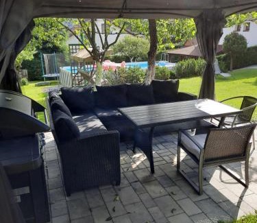 BathroomBody soap, Toilet, Toilet paper, Hairdryer, Walk-in shower, Private bathroom, Shower, Towels, Bathtub or showerMedia & TechnologyMobile hotspot device, Satellite channels, TV, Flat-screen TVKitchenKitchenette, Electric kettle, Cleaning products, Microwave, Kitchenware, Stovetop, Wine glasses, Kitchen, Refrigerator, Dining tableOutdoorsBarbecue, Private pool, Outdoor dining area, Outdoor furniture, BalconyBedroomLinens, Wardrobe or closet, Extra long beds (> 6.5 ft)GeneralHeating, Key access, Carpeted, Interconnecting room(s) available, Private entrance, Trash cansViewGarden view, View, Inner courtyard view, Quiet street view, Pool view, Mountain viewLiving AreaDining areaAccessibilityRaised toilet, Upper floors accessible by stairs onlyBuilding CharacteristicsDetached, Private apartment in buildingRoom AmenitiesSocket near the bed, Feather pillow, Clothes rack, Drying rack for clothingPool and SpaSaltwater pool, Pool with a view |