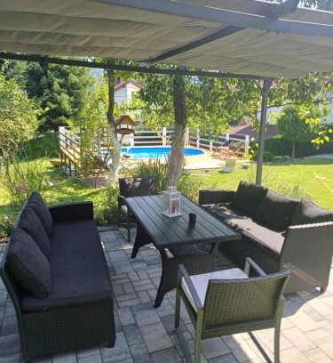 Featuring a terrace, POKOJE RODIS features accommodations in Ustrzyki Dolne. This property offers a private pool, free Wifi, and free private parking. The apartment offers an outdoor fireplace and a 24-hour front desk. Offering a balcony with mountain views, this apartment also features a satellite flat-screen TV, a well-equipped kitchen with a microwave, a fridge, and a stovetop, as well as 4 bathrooms with a walk-in shower and a hair dryer. The property has an outdoor dining area. Guests can make the most of the warm weather with the property's barbecue facilities. After a day of skiing, fishing, or hiking, guests can relax in the garden or the shared lounge area. Skansen Sanok is 26 miles from the apartment, while Krzemieniec is 28 miles from the property.