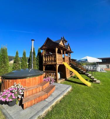 Offering river views, Pokoje Widok Szlembark in Szlembark features accommodations, free bikes, and a shared lounge. This property offers access to a balcony and free private parking. The apartment offers mountain views, a sun terrace, and free Wifi is available throughout the property. The units come with parquet floors and feature a fully equipped kitchen with a dishwasher, a dining area, a flat-screen TV, and a private bathroom with shower. At the apartment complex, the units are fitted with bed linen and towels. Buffet and continental breakfast options with warm dishes, local specialities, and fresh pastries are available. For guests with children, the apartment provides outdoor play equipment. Guests can swim in the pool with a view, go skiing or cycling, relax in the garden, and use the barbecue facilities. Niedzica Castle is 9.5 miles from Pokoje Widok Szlembark, while Bania Thermal Baths is 12 miles away.