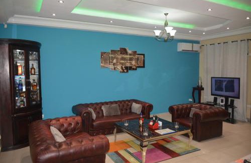 Polgaro duplex luxueux is a recently renovated villa in Douala where guests can make the most of the garden and bar. This property offers access to a balcony, free private parking, and free Wifi. The accommodation offers a shared kitchen, full-day security, and currency exchange for guests. Offering a terrace and quiet street views, the spacious villa includes 4 bedrooms, 2 living rooms, cable flat-screen TV, an equipped kitchen, and 3 bathrooms with a walk-in shower. Providing air conditioning, the villa offers Blu-ray player, DVD player, and a CD player. Additional in-room amenities include wine or champagne. A car rental service is available at the villa. Akwa Stadium is 9.5 miles from Polgaro duplex luxueux, while Port Authority of Douala is 10 miles from the property. Douala International Airport is 6.8 miles away, and the property offers a paid airport shuttle service.