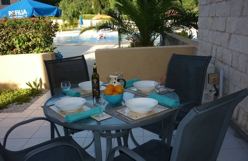 The house which is air conditioned throughout has two twin bedrooms, each with en suite shower, WC and washbasin. There is a further WC downstairs. The kitchen is fully equipped and there is a beautiful lounge and dining area. The flat screen TV has a set top box which receives all UK Freeview channels plus some Sky ones. It also offers a 7 day catch up facility. A DVD/CD player is also provided. There are ceiling fans in both bedrooms as well as in the lounge and dining areas