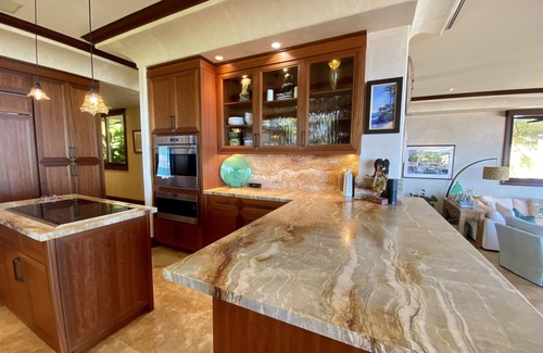 Spectacular views of Molokini, Kaho’olawe, Lanai and West Maui. Ocean views from almost every room, including the kitchen sink! Wake up and go to sleep with the sound of the ocean. This is a beach and ocean lover’s dream.