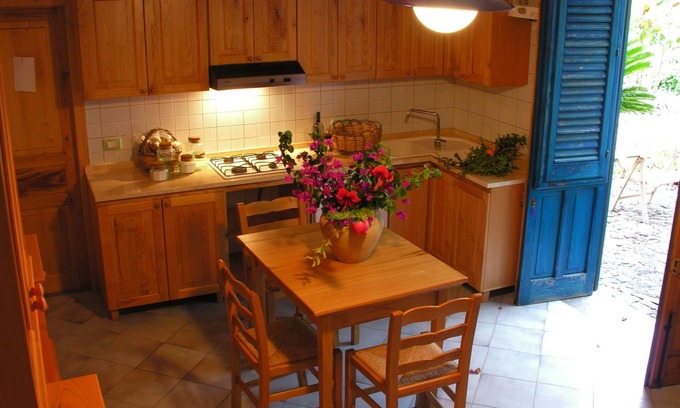 The bright colors of the Sicilian majolica, the furnishings and the wonderful blooms of the garden make the atmosphere cheerful and relaxed, typical of the Mediterranean islands. There are four apartments with different capacities from 2 to 6 seats, each with independent access from a common outdoor pergola with areas of relevance for each accommodation.Outside, among vine pergolas and flowering creepers, there are welcoming furnished spaces to enjoy a meal outdoors or a relaxing reading, immersed in the flavors and aromas of a Mediterranean vegetable garden. In the area adjacent to the patio there is a delightful garden with an area reserved for the barbecue and two very comfortable outdoor showers when returning from the sea or to cool off during the day. Fiore all'occhiello is the wonderful vegetable garden for free use of our guests. Following the rhythm of the seasons and local biodiversity, it generously offers its fruits.